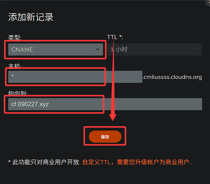 你的自定义域名,例如bp.cmliussss.cloudns.org- 注意!你的域名如果是 cmliussss.cloudns.org ,则必须多加一级域名,例如 bp.cmliussss.cloudns.org